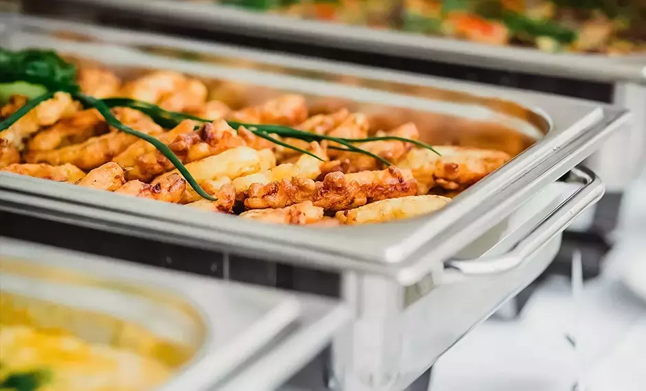Oferujemy kompleksową obsługę cateringową dopasowaną do charakteru i stylu każdego wydarzenia. Współpracujemy z renomowanymi dostawcami, dzięki czemu gwarantujemy wysoką jakość potraw i obsługi. Proponujemy różnorodne warianty menu - od bufetów i finger foodów po eleganckie serwisy kelnerskie. Dbamy o estetykę podania, świeżość produktów i indywidualne preferencje uczestników. Zapewniamy opcje wegetariańskie, wegańskie, bezglutenowe i dietetyczne. Catering to nie tylko jedzenie - to również element scenografii i doświadczenia gości. Obsługujemy wydarzenia w salach, plenerze i halach namiotowych, dopasowując format do warunków. Oferujemy również bary kawowe, strefy chillout z napojami i pokazy live cooking. Każdy posiłek serwujemy z dbałością o detale i zgodnie z harmonogramem wydarzenia. Z nami smaki zapadają w pamięć, a goście wychodzą zadowoleni i nasyceni.